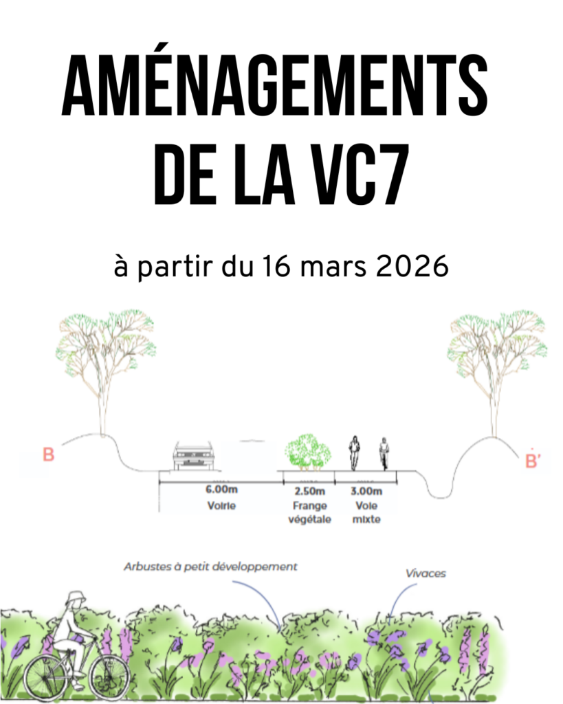 Enrichi des propositions des habitantes et habitants, exprimées lors de la réunion publique de décembre, le plan est désormais fin prêt. Les travaux de réfection et d’aménagement de la Voie Communale n°7 débuteront le 16 mars 2026, pour 3 mois sous réserve des conditions météo.